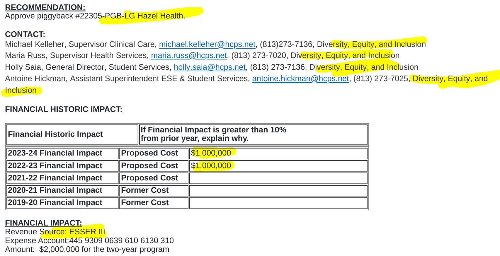 This ARP money was used to fund the Hazel Health contract in Hillsborough County Schools, FL.
