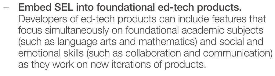 In this 2016 document the World Economic Forum (WEF) encourages blending SEL into EdTech products:
