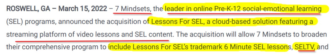 Marketing SEL as “Resiliency” doesn’t change the content. Hillsborough Schools, FL is still using Panorama Surveys (SEL), and 7 Mindsets (SEL), and Second Step (SEL), and ...so on. Resiliency is just a more palatable word being marketed to replace the phrases: Mental Health and Social Emotional Learning.