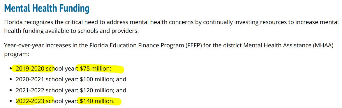 Here is Florida Department of Education’s funding history on the Mental Health Assistance Allocation:
